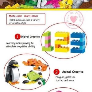 Phát triển tư duy, sáng tạo:Bộ 460 nhiều màu sắc, nhiều hình khối có hẳn 460 miếng cho các con tạo con vật , ô tô, máy bay, ….