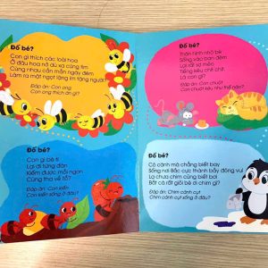 👉 Cuốn sách được minh họa bằng các hình vẽ ngộ nghĩnh, đáng yêu và kèm theo câu trả lời bên dưới mỗi hình, giúp bé phát triển tư duy và nhận biết về thế giới xung quanh.